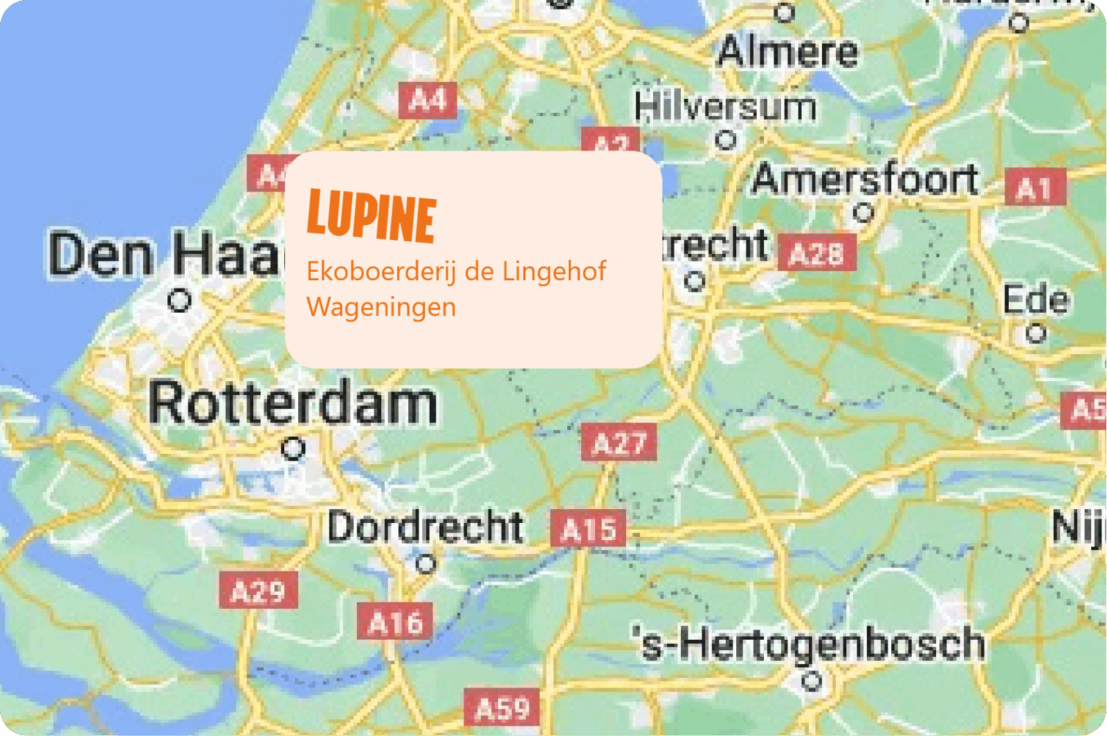 Lekker Lupine brengt plantaardige eiwitten in de vorm van lokaal geteelde lupinebonen terug op de Nederlandse akkers en het bord. Ze telen lupine, ontwikkelen en verkopen lupine producten, inspireren, delen kennis en activeren. Hoe meer lokale lupine we consumeren, hoe meer telers kunnen aansluiten. Dat is goed voor de boer, het klimaat en jouw gezondheid.